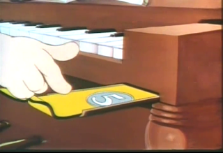 ...and drops it in the slot of what we learn is a player piano.