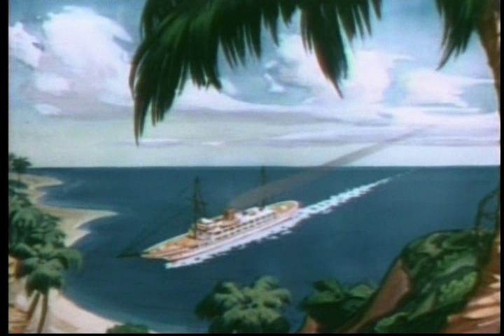Like its forebearer, Land of the Midnight Fun, this cartoon hews to a limited, controlled color palette, The blue-green ocean floor settings call for a small set of earth-tone hues for the animated figures. Such disciplined color is rare in 1930s Technicolor animation. With a gaudy rainbow at their disposal, Avery and his designers stick to only the tones necessary to put across the episodes of this cartoon.